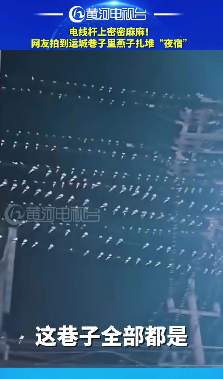 山西运城老巷惊现“燕子军团”!电线杆挂满“活雀子” 居民:像看奇幻片